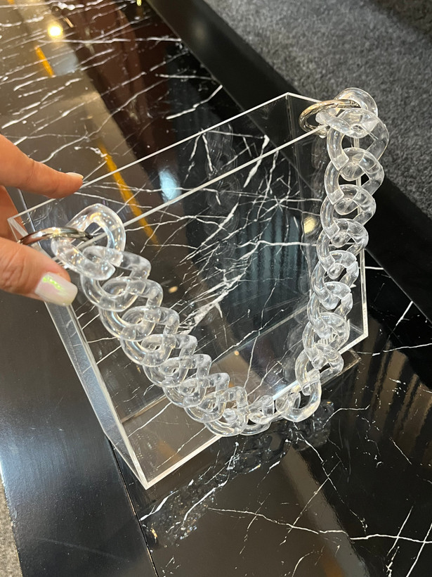 روی خود کیف زنجیر کوتاه شفاف موجود میباشد.