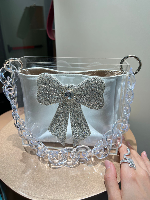 روی خود کیف زنجیر کوتاه شفاف موجود میباشد.