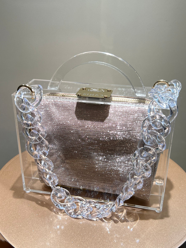 روی خود کیف زنجیر کوتاه شفاف موجود میباشد.